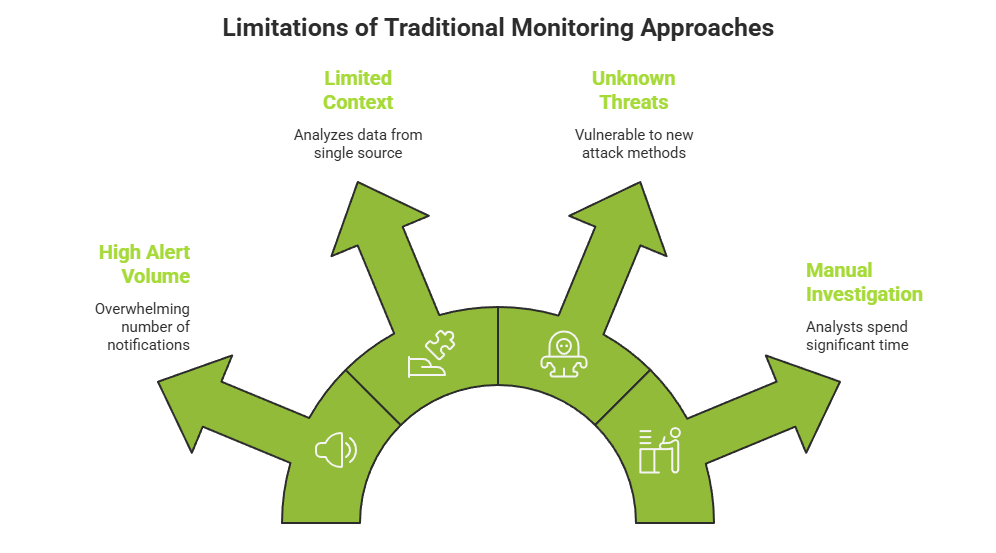 Conventional security monitoring solutions typically depend on rule-based detection mechanisms. While effective for known threats, these approaches struggle to keep pace with modern attack techniques.