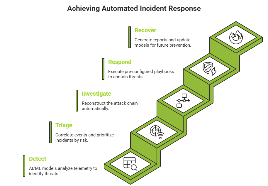 Automated Incident Response, delivered through AI-driven Extended Detection and Response (XDR), represents a fundamental shift in how organizations approach this problem. Rather than relying on reactive, human-paced workflows, AI-driven XDR enables security teams to detect, investigate, and contain threats at machine speed – dramatically compressing the window adversaries have to operate.