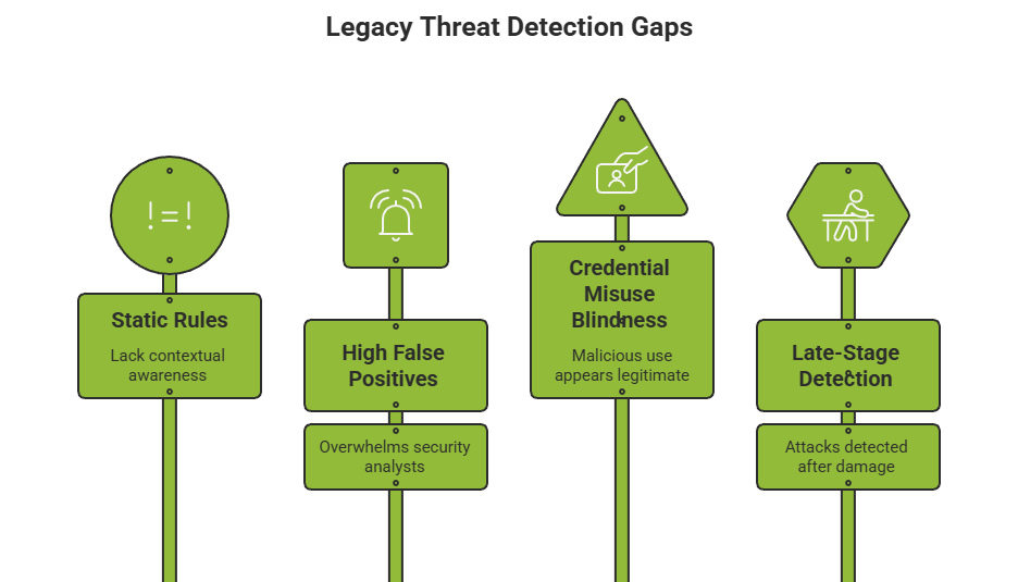 While these approaches still detect known threats, they fail in dynamic, identity-driven environments.