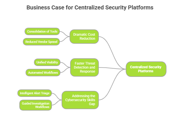 With a global shortage of 3.4 million cybersecurity professionals, organizations can’t rely on hiring their way out of security challenges. Centralized platforms leverage AI and automation to multiply the effectiveness of existing teams. Features like intelligent alert triage, guided investigation workflows, and automated response playbooks enable junior analysts to handle incidents that previously required senior expertise