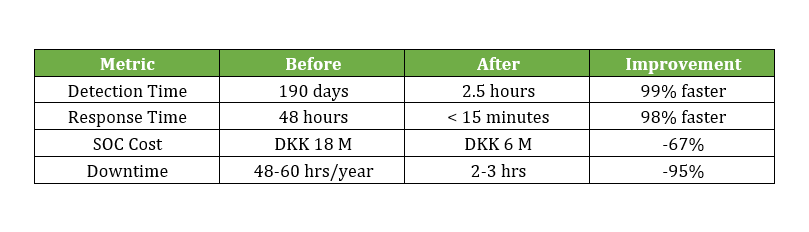 Each avoided ransomware incident (average DKK 40–70 M loss) pays for the platform for a decade.