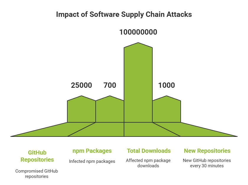 In what security experts are calling one of the most severe JavaScript supply chain attacks in history, a self-propagating worm dubbed “Shai-Hulud 2.0” has compromised over 25,000 GitHub repositories and 700+ npm packages with a combined download count exceeding 100 million. The attack, which began on November 21, 2025, represents a dangerous evolution from the original September campaign, featuring pre-install execution, destructive payloads, and exponential worm-like propagation.