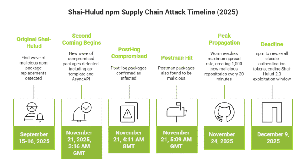 Three months later, the attackers returned with a vengeance. Starting on November 21, 2025, security vendors began detecting a new wave of compromised packages. This time, the infection spread at unprecedented speed: