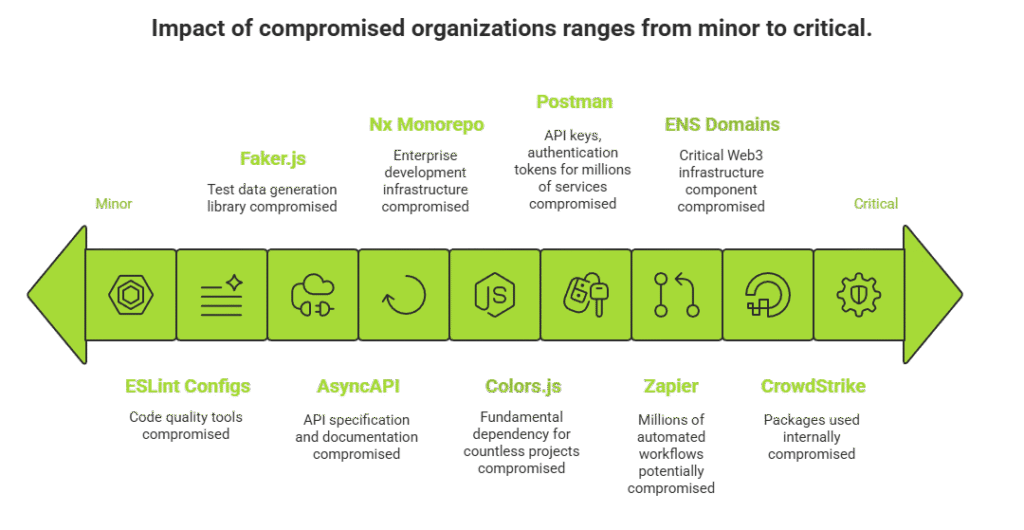 • Major victims: Zapier, ENS Domains, PostHog, Postman, AsyncAPI, CrowdStrike