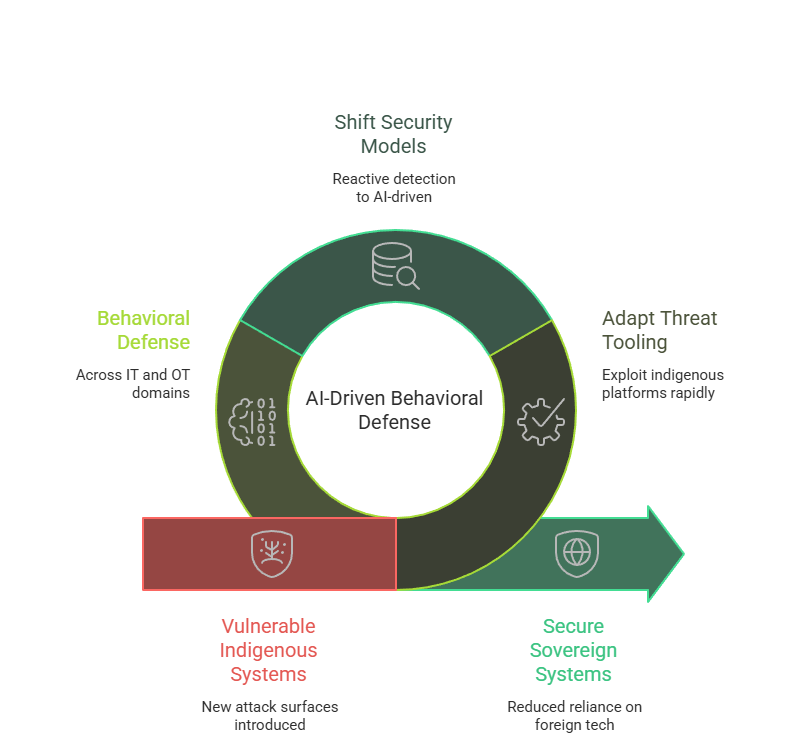 Threat actors are rapidly adapting their tooling to exploit indigenous platforms. Signature-based security models designed for commercial IT environments struggle to detect adversaries targeting customized defence infrastructure. This requires a shift from reactive detection to AI-driven behavioral defense across IT and OT domains.