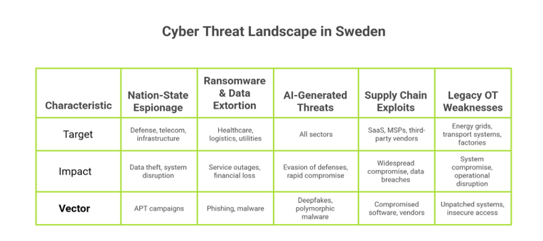 These attacks target critical infrastructure across energy and healthcare, as well as telecom and banking industries that form the backbone of the Swedish economy.