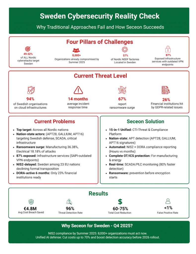Following its NATO accession, nation-state attacks surged by 315%, and nearly half of all Nordic ransomware incidents now occur in Sweden.