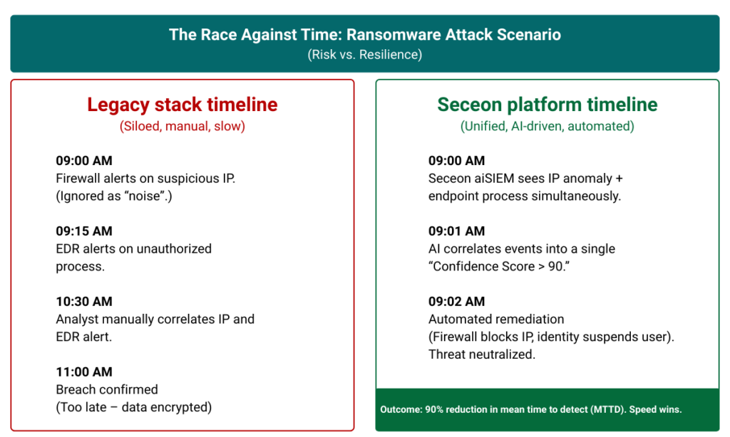 This timeline demonstrates how slow, siloed correlation leads to a catastrophic breach: