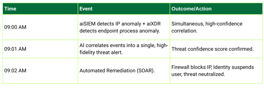 This process delivers a 90% reduction in MTTD and superior Network threat protection, changing the outcome from a breach to a contained incident.