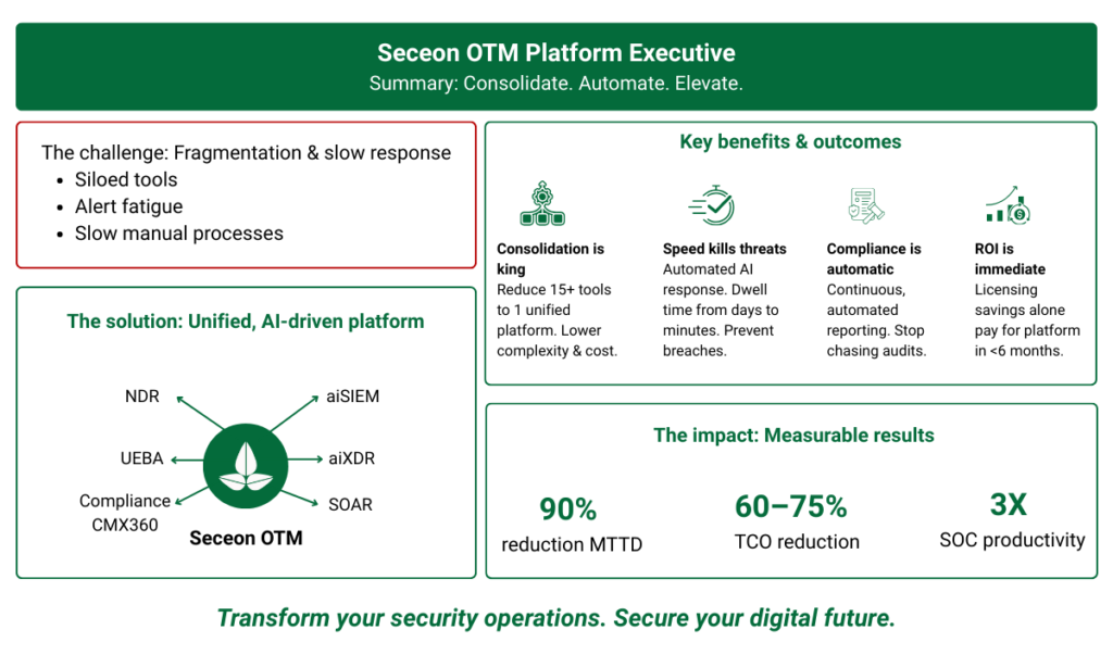 The Seceon platform delivers a 60-75% TCO reduction and often achieves full ROI in under 6 months through operational efficiency.