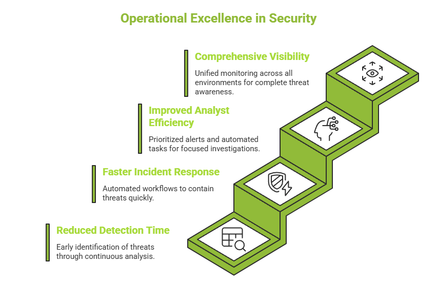 Security teams often struggle with limited visibility across environments, slow investigations due to manual data correlation, and delayed response times caused by fragmented workflows. Additionally, analysts may experience alert fatigue when multiple tools generate uncoordinated alerts.