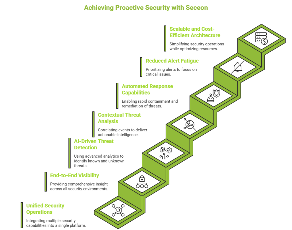 By combining these capabilities into a unified platform, Seceon helps organizations transition from reactive security to a more proactive and resilient approach.